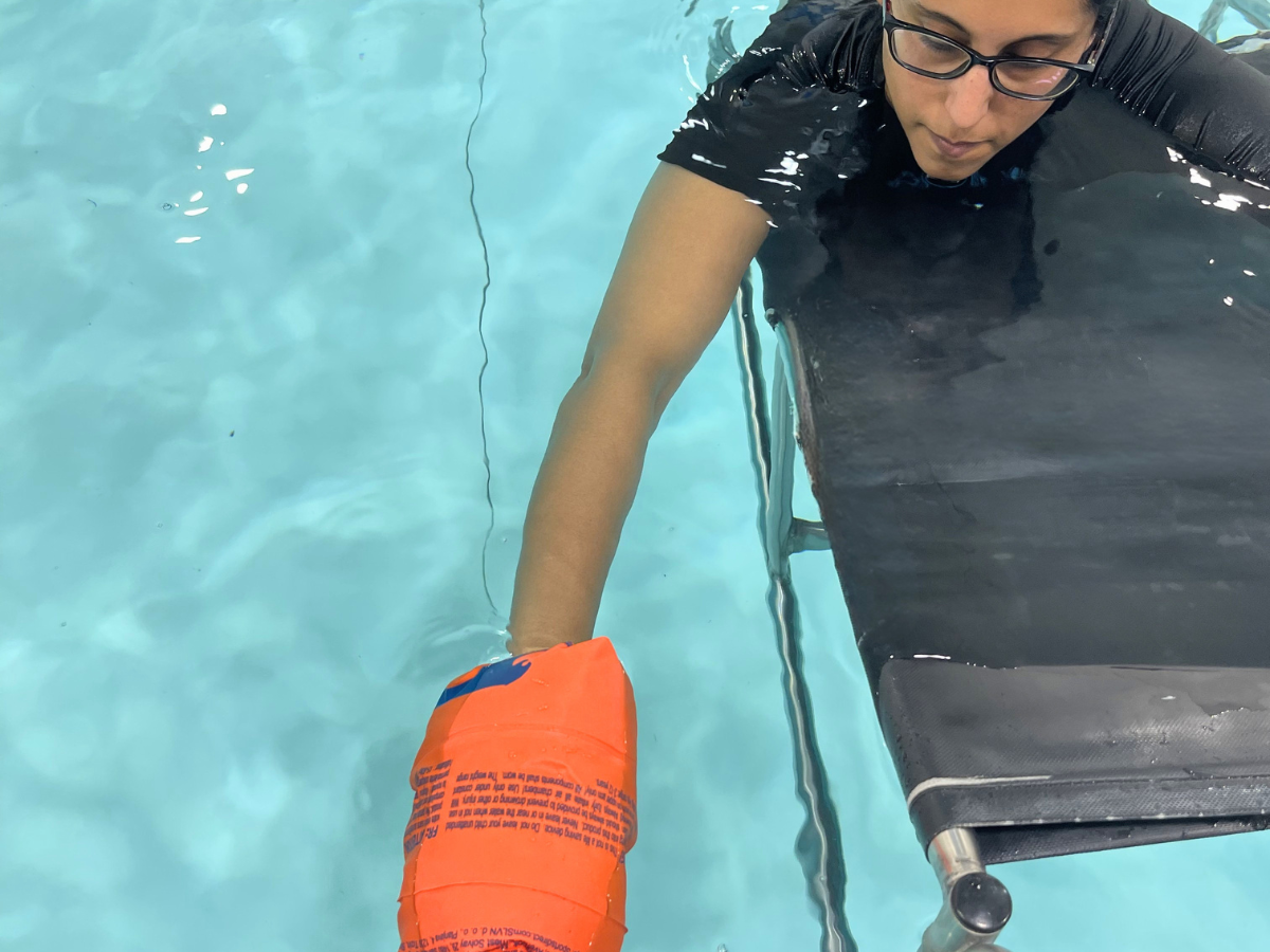 Using a float or buoyancy aid, your arm is gently assisted upwards.